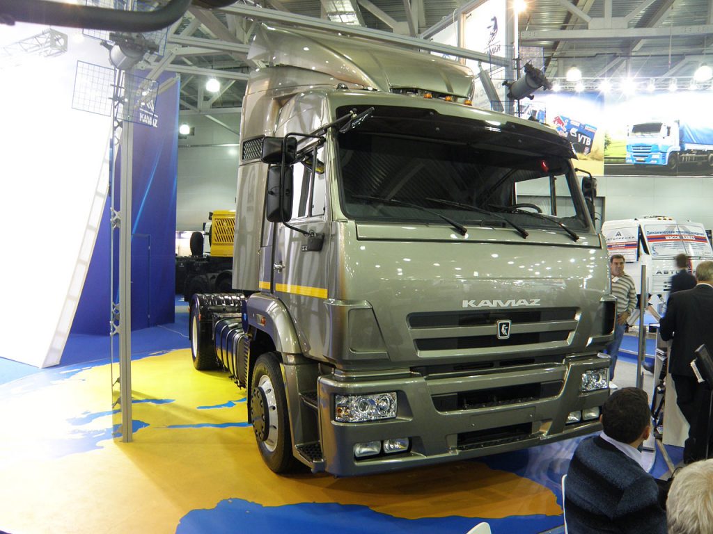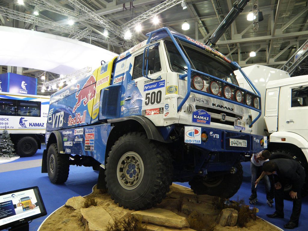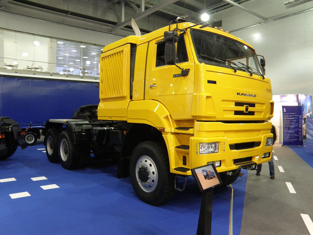 There are some technical improvements too. For example, the engine power now comes to 420 hp (for Kamaz engine) or 300 hp (for Cummins engine), and fuel consumption reduced by 10%. But the most interesting of the whole range of updated Kamaz trucks was heavy duty tractor Kamaz 65226 with Cummins engine rated at 535 hp and GCW of 98,700 kg. At the center of the exhibition was placed the champion’s race truck of Vladimir Chagin with racing number 500 and also an updated look. In bus field there were also some news.
