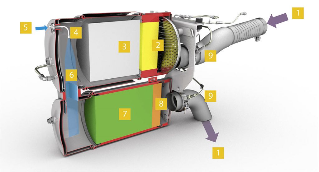 In formulating its regeneration strategy for the diesel particulate filter, MAN paid special attention to maximum operational reliability. Regeneration of the particulate filter takes place automatically during normal operation without any action having to be taken by the driver. Regeneration in the TGX, TGS and coach is designed to be carried out by a passive SCRT system. In normal driving operation, the system functions at exhaust-gas temperatures at which regeneration permanently takes place. Special regeneration phases or supplementary injection of fuel to raise the temperature are not necessary during normal operation. If the vehicle spends a lot of time idling or is operated in short-distance transport, the system has other modes that enable it to perform regeneration while on the go. Whenever necessary, the “Soft Active” mode uses a secondary-injection function of the common-rail system to raise the temperature of the exhaust gas. The engine variants installed in the TGL and TGM series are fitted as standard with active SCRT systems for regeneration of the diesel particulate filter and are thus optimally equipped to meet the demands of distribution transport.