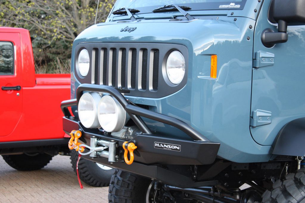 The outrageous Mighty FC is also based on a Jeep Wrangler Unlimited Rubicon chassis and cab, once again using the Mopar JK-8 pickup truck conversion kit as a starter and made over to look very much like the Jeep Forward Control pickups built between 1956 and 1965. The cab has been fitted with a custom flat nose, seven-slot grille and an extra pair of high-intensity-discharge headlamps positioned directly over the front Mopar Portal offset axle assembly for enormous ground-clearance numbers.
