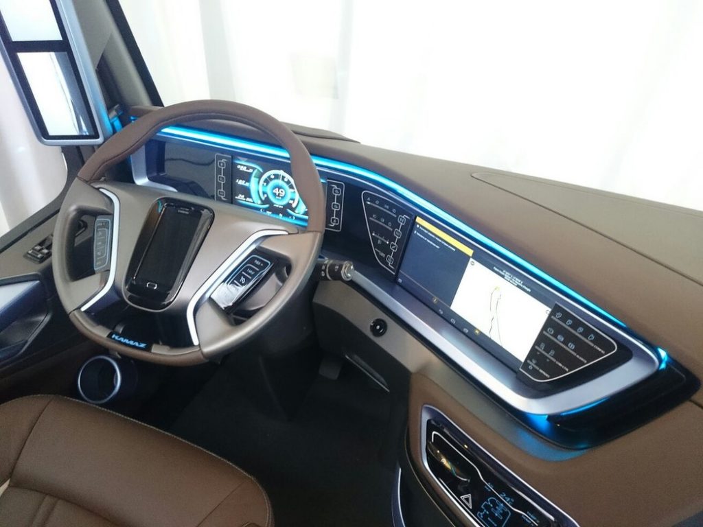 The concept is based on an already existing Kamaz cabin. Kamaz-2020 is the larges cabin ever presented by the company, which offers the largest living space and comfortable conditions for drivers. It has a flat floor and almost 2m of space between floor and ceiling.