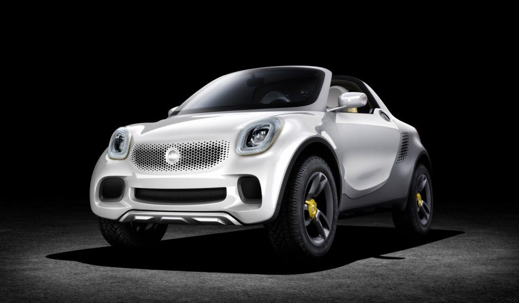 Yes, this tiny concept car is an open-top pickup complete with a sturdy tray, which Smart claims is ideal for holding a pair of bikes or whatever else, but not too big. The electric drive of the For-Us Concept is based on the electric drivetrain that will feature in the latest-generation Smart ForTwo Electric Drive due this spring. It consists of an electric motor rated at 73 horsepower and 95 pound-feet of torque and a lithium-ion battery with a capacity of 17.6 kWh. In the For-Us Concept this zero-emission drivetrain will see the vehicle reach a top speed of 75 mph.