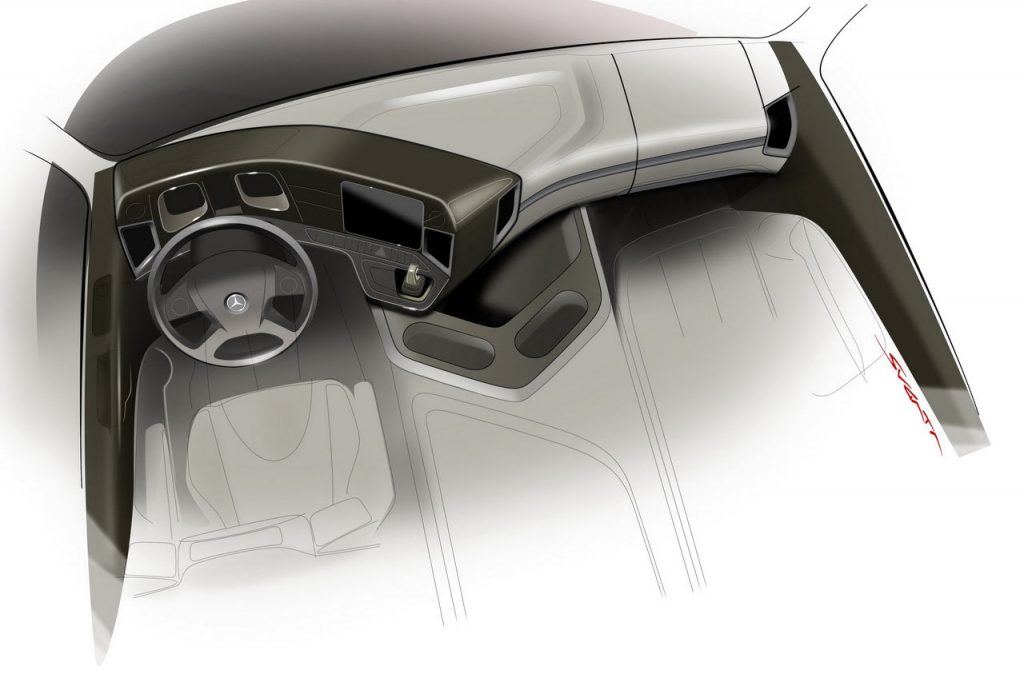 Power comes from a variety of engines (13 in total) with power outputs ranging from 238 hp to 510 hp, transmitted to the road via an automatic PowerShift transmission. Other details are sparse and we’ll probably have to wait until September to get the full scoop on Mercedes’ new truck.