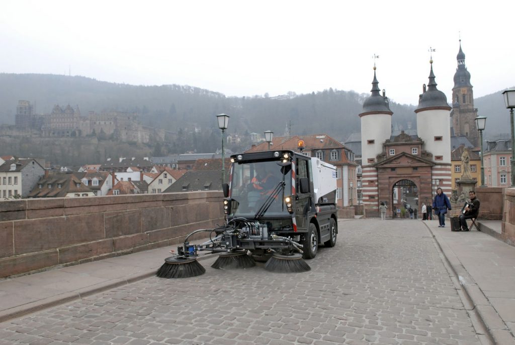 Schmidt uses new technology in the sweeping system as well. The SWINGO 200+ is available as 2-brush and 3-brush system. Both variants, however, use the well-proved pressurised water re-circulation system, which binds the dust in the suction well, and have the fine dust certificate PM10. The outstanding features of the SWINGO 200+ include the hydro-pneumatic chassis. It allows for lowering the chassis during the sweeping operation by up to five centimetres, due to which the compact 2-cubic metre sweeper is also capable of coping with low entrances of underground and multi-storey car parks. A further advantage: the suspension automatically levels itself through the lowering and lifting.