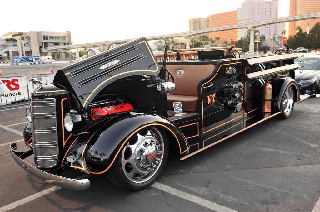The stock Mack axle remains up front, but the rear suspension and axle from a 2008 Ram truck resides out back. Other features include Dodge Ram SRT10 brakes, 24-inch American Force wheels and custom leather seating. Lest you think this is just a show truck, Stark tells us that the owner plans to actually drive the thing. He is even going to make the trek from his home in Kansas City to the Goodguys Nationals in Columbus, Ohio come July.