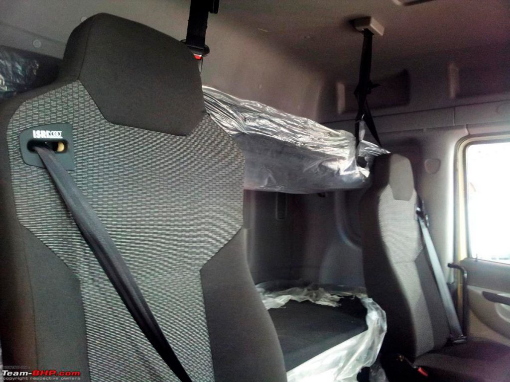 The Tata Prima 4938.S is the first Indian puller-tractor which caters to customers engaged in the logistics of over dimensional cargo. For example, Railway coaches, windmill components etc. This truck comes with a Cummins ISLe engine producing 370 BHP of power @ 2100 RPM and a whopping 1550 Nm of torque @ 1200-1400 RPM. Gearbox is an Eaton ES15409 DD – 9 Speed with crawler and reverse. Gets tilt and telescopic steering column along with air-conditioning and a hydraulically tilting sleeper cabin.
