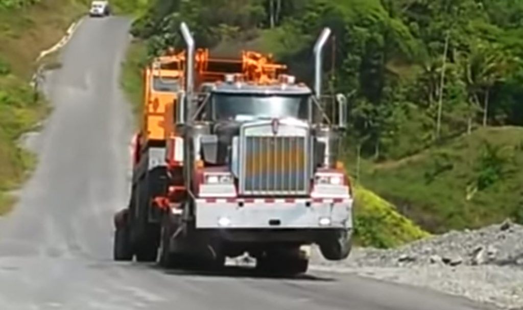 Video: Watch This 600hp Kenworth Grunt A Mobile Crane Up A Steep Hill