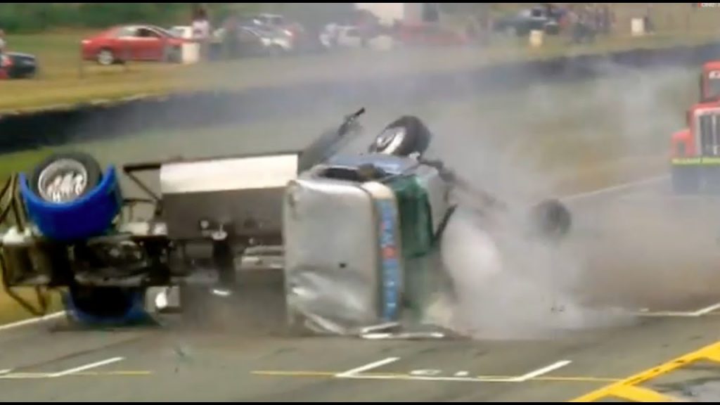The track is a 1.6 mile facility that has a straight which measure about a half mile long. It has been open since the late 1950s and is the second most southern racing facility in the world. Only a track in Argentina is closer to the South Pole than this place. We’re not sure what the rules of the series that West was competing in are but we can tell you that the cab of his truck must have a good cage in it because it seems to be the one piece of the rig that was not compromised by the impact and ensuing flips. You will actually see West climb from the truck after all the madness stops.